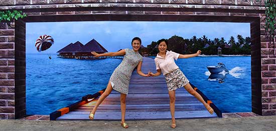 据介绍,3D魔画艺术又称“立体画展”,起源于上世纪60年代的“奇幻艺术”运动。它不仅是一个可观看的幻觉体验型艺术,更可以用于入画触摸,惊艳pose摆拍等亲身体验,如临其境,梦幻神奇。魔画一条街内,现有3D魔画十余幅,其中有美人鱼、海底世界、海豚、鳄鱼等。在这里,您仿佛走进时空隧道,与亿万年前的恐龙亲密接触;在这里,您不用去海洋馆或动物园,就可以与海豚、各种鱼类嬉戏玩耍,友好相处;在这里,您可以与金佛见面,求财、求福;在这里,您也可以与凌波仙子一样,在海浪的陪伴下,从大海深处缓缓走来。