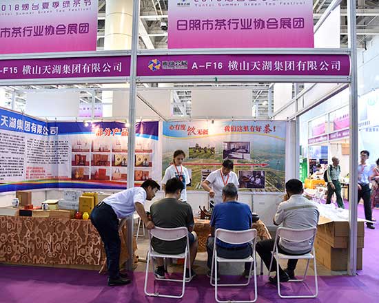 本会讯 6月22~25日,在协会的统一组织下,凇晨、横山天湖、岚润、驻龙山、岭岫、瑞谷、茶乡人、松山、德润、北将春等10家茶企,参加了在烟台国际博览中心举办的烟台绿茶节。执行会长王子春、常务副会长姜涛带队参加。