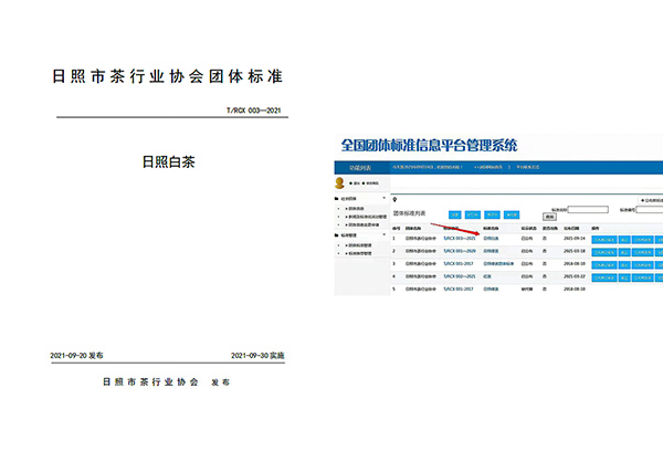 9月20日,由协会提出并归口管理的《日照白茶》团体标准,正式在《全国团体标准信息平台管理系统》上发布,将于本月30日正式实施。