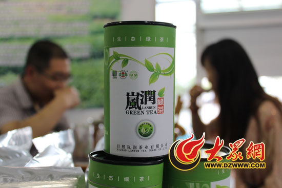 24日上午10时多,日照市岚润茶叶有限公司总经理贺昭胜正在展位前冲泡茶叶,此时一位三四十岁的男士经过,贺昭胜热情地请他坐下来品尝一下日照绿茶。